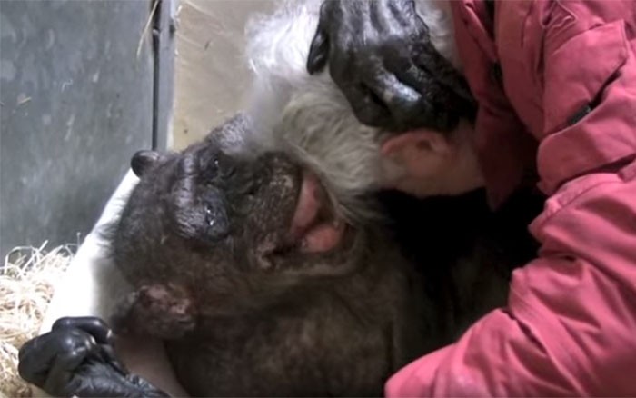 Az 59 éves utolsó óráit élő csimpánz megható találkozása régi gondozójával