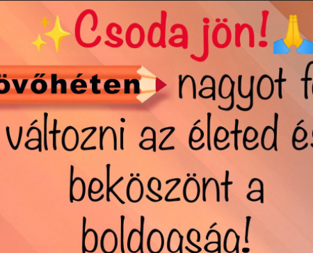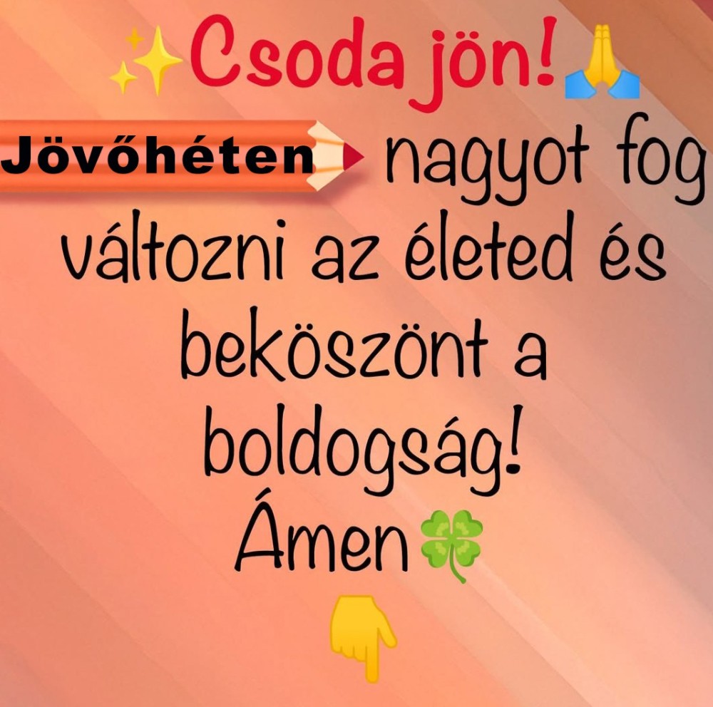 ✨ Csoda jön! 🙏 Jövőhéten nagyot fog változni az életed és beköszönt a boldogság! Ámen 🍀👇