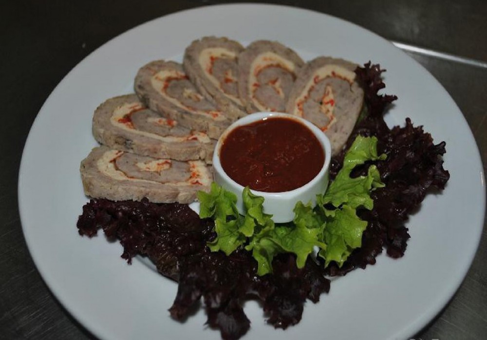 Amikor megsült tegyünk a tetejére nehezéket és hagyjuk kihűlni. Miután kihűlt szeleteljük fel, salátát kínáljunk mellé.