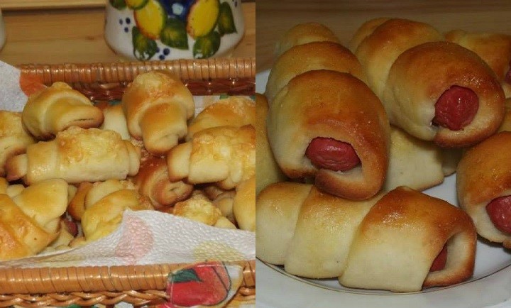 A kifliket olajozott tepsibe sorakoztatjuk, tojással megkenjünk és reszelt sajttal megszórjuk. Előmelegített sütőben pirosra sütjük. /ez nálam a szokásos 45 perc, gáz tepsiben közepes lángon.:)/ Dupla tésztát készítettem és az egyik adagot virslivel tekertem fel. Így is nagyon finom lett!