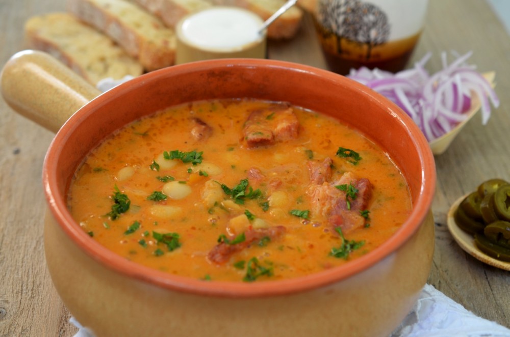 Tejfölös bableves füstölt csülökkel gazdagon! Kiadós és isteni!
