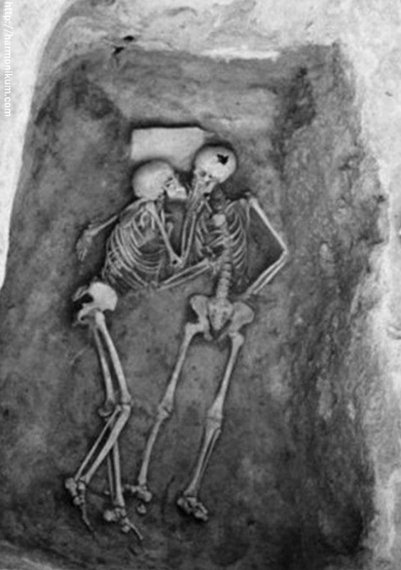 Csaknem 2800 évvel később találták meg őket egy ásatás során, abban a helyzetben, amelyben meghaltak: a férfi csontváz karja a nő dereka körül, miközben megcsókolta.