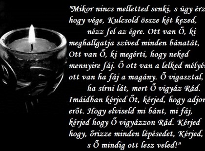 "Sötét van, mégis bármerre nézek Körülöttem gyertyák százai égnek Mindegyik lángja egy életről mesélnek. De van egy láng mi csak nekem mesél. Rólad, s arról engem mennyire szerettél E lángot a szívembe özön míg élek Míg egyszer majd rólam is a gyertyák mesélnek!!"