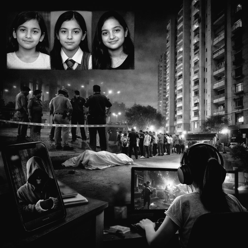 A hatóságok közlése szerint a tragédia hajnali 2 óra 15 perc körül zajlott le. A három nővér – Pakhi (12), Prachi (14) és Vishika (16) – a család kilencedik emeleti lakásának erkélyére ment ki, bezárták maguk mögött az ajtót, majd egymás után a mélybe vetették magukat.