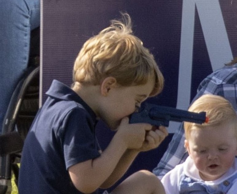 /Ezen az látható, ahogy a kis György herceg egy játékpisztolyt tart a kezében és játszik vele\./