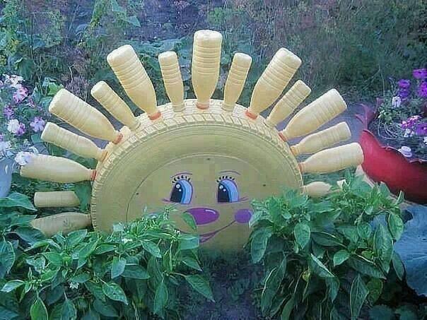 /Amint az alábbi fotóból kitűnik, nem mindenki vásárol méregdrága kerti bútort\-kerti díszt, hanem újrahasznosítja azt, ami a háztartása egyéb területén már hulladék, ez esetben az autóján kiszolgált gumiabroncsokat\./