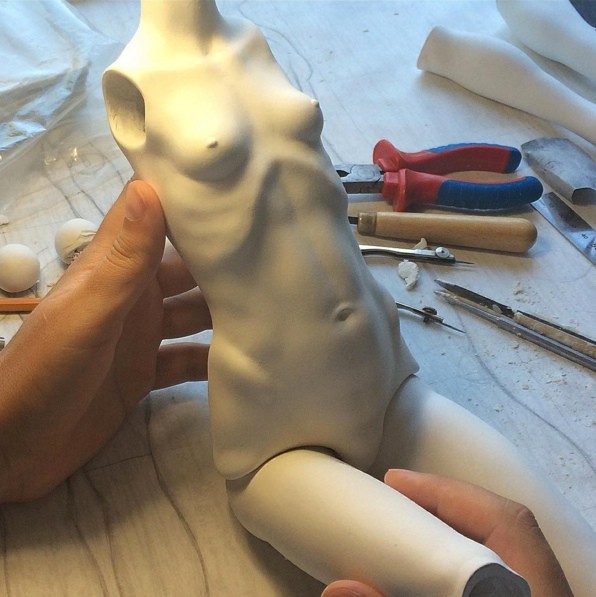 Aztán elkészíti a szerkezetet, a testet, és a végtagokat. Összességében 12 mozgatható szerkezetből áll, így a baba később különböző pózok és pozíciókban tündökölhet. Ebben a szakaszban még minden mesterségesnek tűnik.